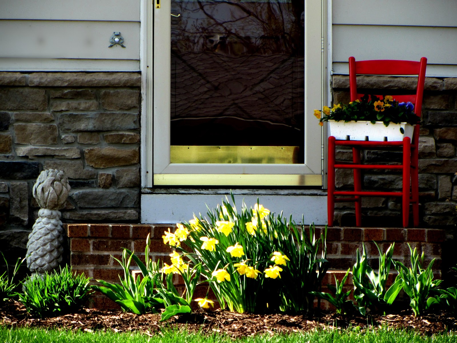 I love your bright signs of spring. My daffodils are blooming in one of the more sheltered corner by the back door. It's raining today and I had to go to a funeral so I am just returning to work.